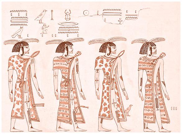 Известные египтянам народы, изображенные в гробнице Сети I. Гравюра из альбома «Памятники Египта и Нубии». Художник Дж. Анджелелли, 1832–1844 гг.