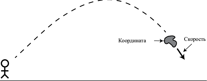 Классическая физика предлагает стройную картину мира, однако прежде чем ее удалось сформулировать, было пройдено несколько критически важных этапов. Обратите внимание, насколько щепетильно приходится отбирать информацию, на основе которой мы определяем, что произойдет с камнем: его координата, скорость и то, какие силы на него воздействуют. Можно считать эти силы элементами внешнего мира, а существенная информация о самом камне сводится к значениям его собственных координаты и скорости. Напротив, ускорение камня в любой момент времени — это не та величина, которую требуется указать; именно эту информацию позволяют вычислить законы Ньютона, если известны данные о положении и скорости камня.