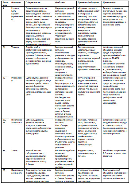 Витамины и минеральные вещества не поставляют организму энергию, но обеспечивают его слаженную, гармоничную работу и здоровье. Информацию о том, для чего ребенку нужны те или иные витамины, чем чреват их недостаток и где их искать, вы найдете в следующей таблице.