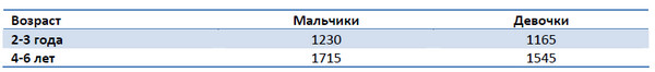 Существуют и другие методики подсчета необходимого количества энергии. Так, в США, Российской Федерации и ряде других стран принято считать, что независимо от пола детям необходимо: