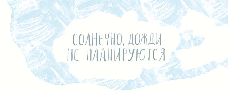 — …И о погоде. Министерство непогоды передаёт, что сегодня нас ждёт малооблачный день. Дожди не планируются.