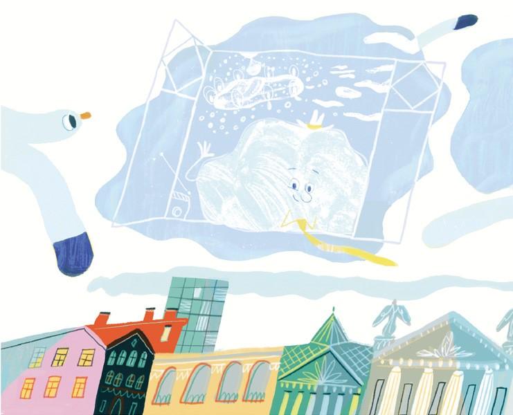 Но сначала посмотри наверх. На небо. Видишь над городом большое-пребольшое облако? Нет, не это, похожее на лошадь. И не это, напоминающее морковку. И не это в форме торта. Смотри правее. Ещё правее! Вот оно — большущее облако, похожее на дом с покатой крышей.