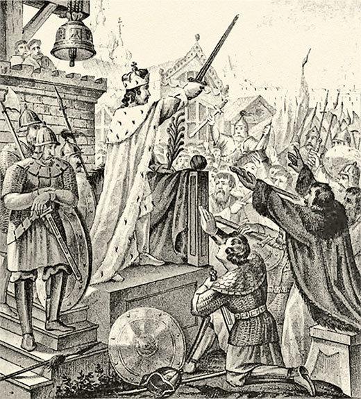2) Значение князя. Название князя на Руси принадлежало только членам Рюрикова потомства и не отнималось ни у кого из них ни в каком случае; старший между ними назывался великим князем. Князь был призван для того, чтобы княжить и владеть, по словам летописи; он заботился об утверждении порядка в земле, о деле военном, о законах. Князь обыкновенно был главным вождем во время войны и верховным судьей во время мира, он наказывал преступников, его двор был местом суда, его слуги были исполнителями судебных приговоров. Князь собирал дань с жителей своей области; кроме того, в его пользу шли пошлины, которые брались при продаже товаров, с обвиненных при решении дел судебных; наконец, большой доход князьям приносили принадлежавшие им земли, населенные рабами: на этих землях князья устраивали себе дворцы, где складывались всякого рода вещи, нужные в хозяйстве, – мед, вино, медь, железо и т. п. Эти земли, доставлявшие множество съестных припасов, давали возможность князьям угощать беспрестанно дружину, духовенство, иногда всех жителей городских.