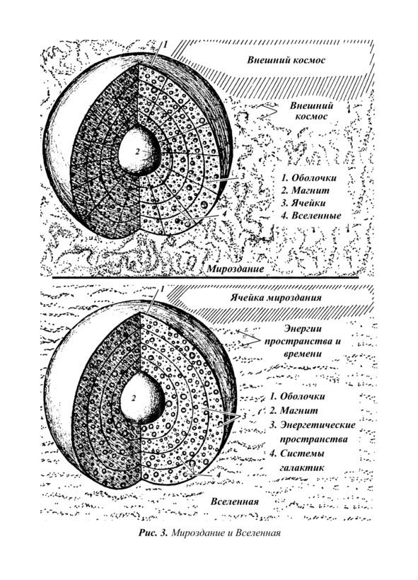 45. Каждое мироздание — состоит из оболочек, магнита и миллиардов вселенных.