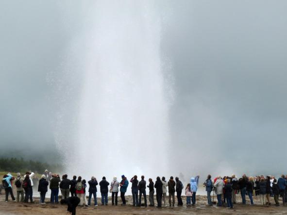 Рано утром первого дня нас посадили в автобус и повезли смотреть какую-то звдостопримечательность. Ею оказалась большая лужа, которую обступила толпа туристов и сосредоточенно всматривалась в ее мутную жижу. Я тоже решила посмотреть, не плавает ли в ней что-то чудесное. Стоило мне приблизиться, как раздался страшный взрыв, и вырвавшийся из недр лужи столб воды окатил меня с ног до головы горячими брызгами и серным зловонием. Я редко ругаюсь матом, но тут получилось непроизвольно. В тот же момент с противоположной стороны лужи мне приветливо замахали руками. Без сомнения, это были русские туристы. Я поспешила ретироваться в автобус. Когда мы вернулись в отель, куратор попросила завтра взять с собой купальные костюмы — всех повезут в Голубую лагуну омолаживаться в горячих термальных источниках.