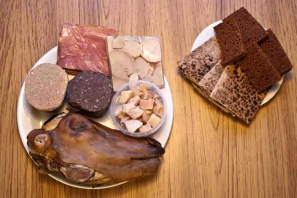 — Тресковые щеки, квашеные тюленьи плавники, мясо тупиков, бычьи яйца, моченные в простокваше, яйца тупиков, тухлое мясо акулы — хакарль, маринованные губы кита, мясо морского котика, хрутспунгур.