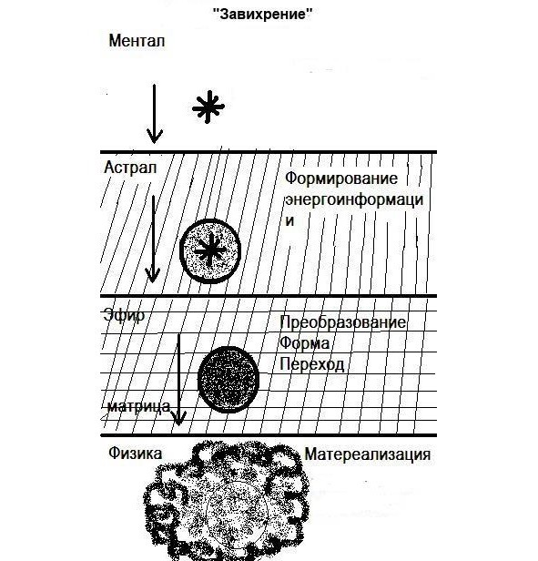 Учитывая все особенности «Завихрения», любая мысль до воплощения в материю проходит 3 сферы оформления.