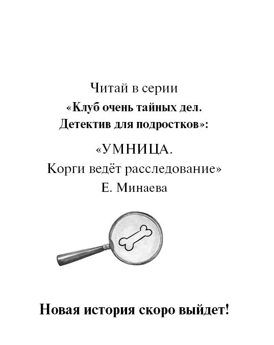 Умница. Корги ведёт расследование : повесть / Екатерина Минаева. – М. : Махаон, Азбука-Аттикус, 2025. – (Клуб очень тайных дел. Детектив для подростков).