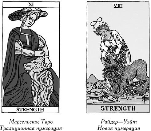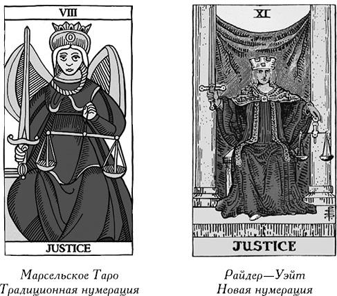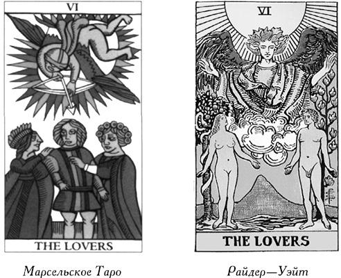 Уэйт назвал эту карту «Влюбленные» и выразил в ней идею чистой любви Адама и Евы, возникшей еще до изгнания из рая. Он также поменял последовательность карт Старших Арканов, переставив местами Справедливость и Силу. Можно предположить, что мотивом к этому послужило его собственное восприятие Каббалы как ключа к пониманию карт. Позднее другой знаток Каббалы и создатель новой колоды Алистер Кроули отверг эту идею и оставил карты на своих местах.