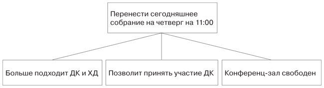 Чтобы донести свои мысли до другого человека, вы должны убедиться, что он группирует предметы таким же образом, как вы. В нашем примере с покупками жене следовало бы, конечно, представить мужу вначале обобщающую категорию, а затем относящиеся к ней продукты — то есть расположить идеи сверху вниз.