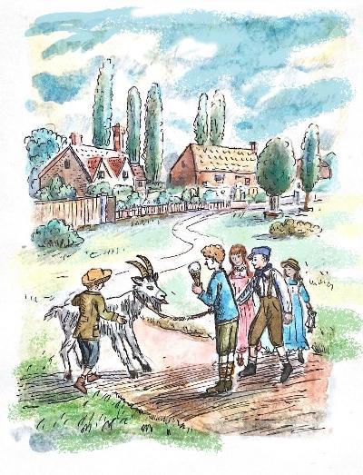 Мы еще никогда так сильно не опаздывали к обеду, и мисс Блейк не оставила нам пудинга, но Освальда подбадривали мысли о козле. Вот только Дикки, казалось, не могли подбодрить никакие прекрасные мысли, и он был таким унылым, что Дора сказала: