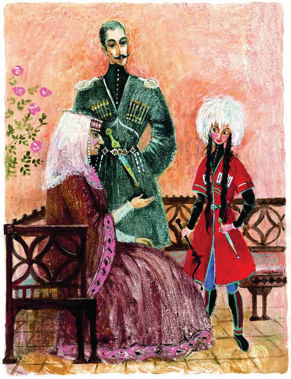 Я обожала ее улыбки, как обожала ее песни… Одну из них я отлично помню. В ней говорилось о черной розе, выросшей на краю пропасти в одном из ущелий Дагестана… Порывом ветра пышную дикую розу унесло в зеленую долину… И роза загрустила и зачахла вдали от своей милой родины… Слабея и умирая, она тихо молила горный ветерок отнести ее привет в горы…