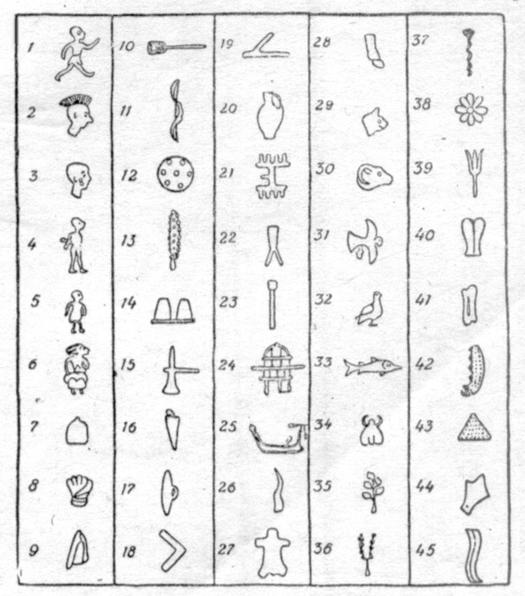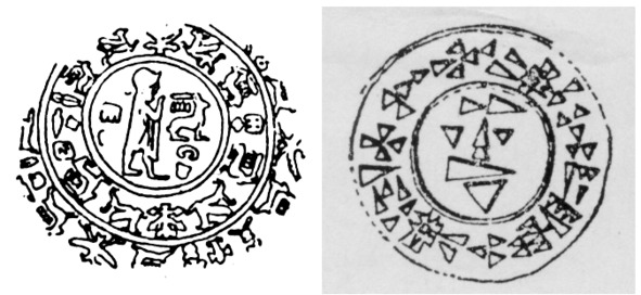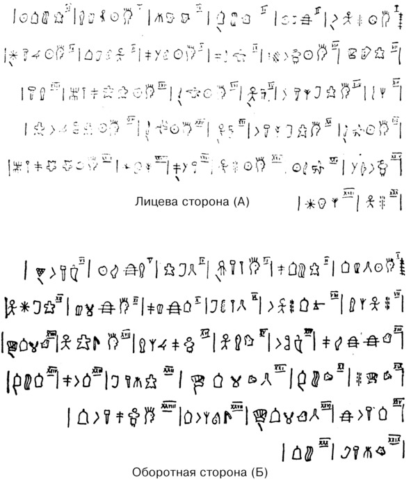 Рис. 1. Текститы. (Агрест М. М. Космонавты древности. // На суше и на море: Альманах. — М., 1961. — Рис. 1—3)