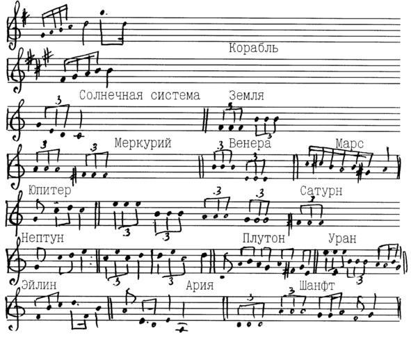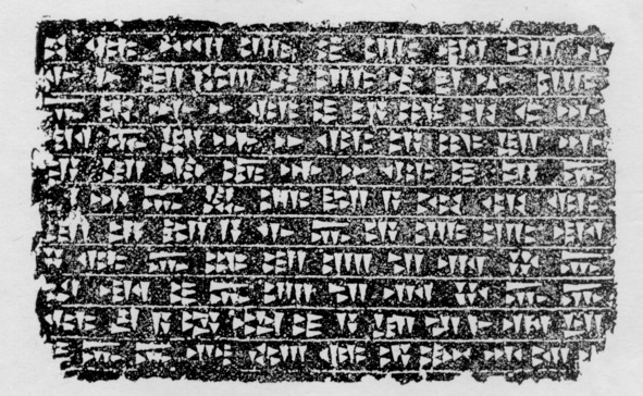 Клинописью записан музыкальный фрагмент. Дешифровка клинописи как системы музыкальной записи была осуществлена в 70-е годы нашего века. (Хеттская и хурритская литература. // История всемирной литературы в девяти томах. — М., 1983. — Т. 1. — С. 118).
