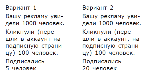 Что изменилось во втором варианте? Ведь очевидно, что эффективность самой рекламы осталась прежней.