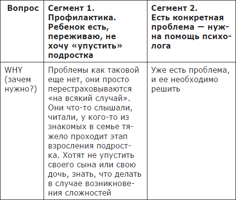 В этом примере остановимся на 2-х сегментах. Они принципиально разные по уровню актуализации проблемы, и вам для них нужны разные продукты.