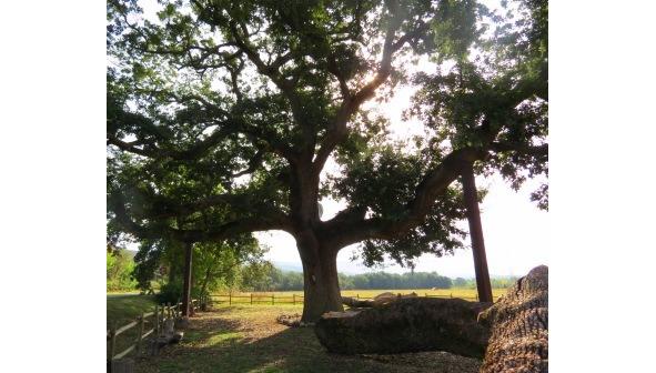 Все старые дубы обладают невероятной энергией, но этот был какой-то особенный. У него была огромная несомкнутая крона с узорчатыми тёмно-изумрудными листьями, расположенными на коротких черешках, словно маленькие лопасти. Толстая кора, сильно растрескавшаяся от старости, имела тёмно-серый окрас с бордовыми вкраплениями. Возле дерева росли сочная зелёная трава и луговые цветы всех цветов радуги. В любое время года здесь стояло лето. Усталый путник мог отдохнуть и переждать непогоду под вечнозелёной кроной.