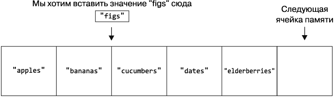 В главах 4, 5 и 6 мы углубимся в эту тему и используем О-нотацию, чтобы заставить код работать быстрее. Попутно я расскажу о разных алгоритмах сортировки, в том числе о сортировке пузырьком, выбором и вставками.