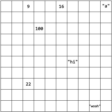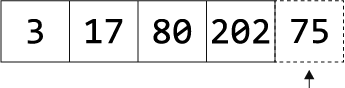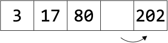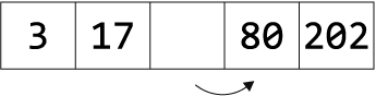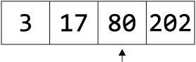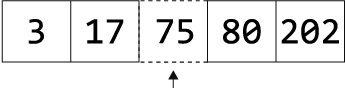 Если мы удвоим количество ячеек в массиве (и для простоты добавим еще одну, чтобы их общее количество было нечетным), у нас получится семь ячеек. Двоичный поиск в таком массиве потребует максимум трех шагов.