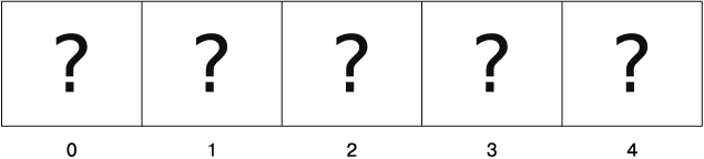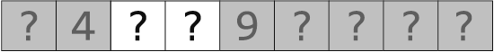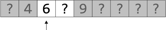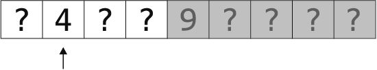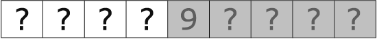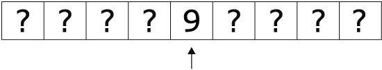 Посмотрим, как осуществляется бинарный поиск в упорядоченном массиве. Итак, у нас есть упорядоченный массив из, скажем, девяти элементов. Компьютер не знает, какое значение в каждой из ячеек, поэтому массив можно изобразить так: