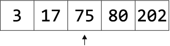 В случае с массивом из трех элементов двоичный поиск потребовал бы максимум двух шагов.