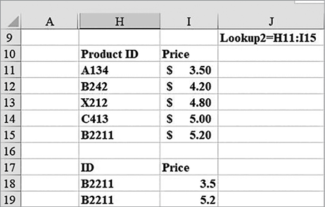 Например, файл Lookup.xlsx (рис. 3.2) содержит цену для пяти продуктов, указанных по идентификаторам. Каким создать формулу, которая по идентификатору продукта выдавала бы цену продукта?