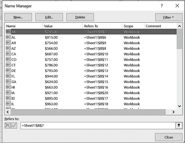 В файле Index.xlsx (рис. 4.1) содержатся данные о расстоянии между восемью городами США. Диапазону C10:J17 с этими данными присвоено имя Distances.