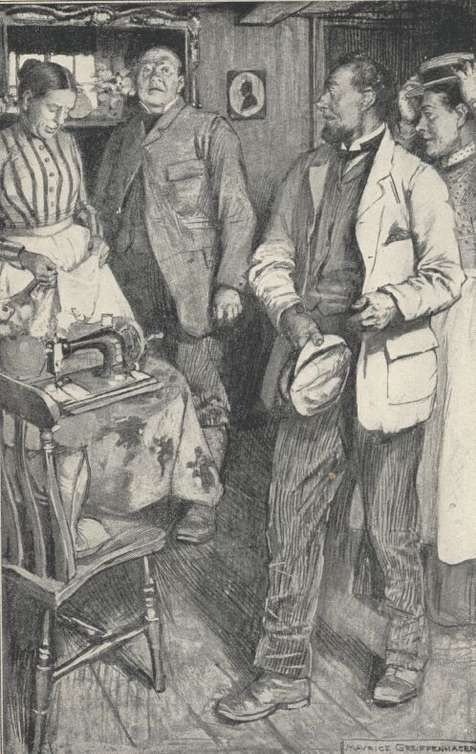 The elders of the Tidger family sat at breakfast—Mrs. Tidger with knees wide apart and the youngest Tidger nestling in the valley of print-dress which lay between, and Mr. Tidger bearing on one moleskin knee a small copy of himself in a red flannel frock and a slipper. The larger Tidger children took the solids of their breakfast up and down the stone-flagged court outside, coming in occasionally to gulp draughts of very weak tea from a gallipot or two which stood on the table, and to wheedle Mr. Tidger out of any small piece of bloater which he felt generous enough to bestow.