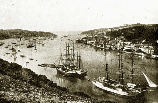 Falmouth (3207), a seaport, market, and union town and a municipal borough. It is the head of a county court district. Falmouth was incorporated by charter 1661. It has the advantage of possessing one of the finest and most capacious harbours in the country. As many as 350 to 400 sail have taken refuge here in winter at various times. There are docks, factories, and building yards. Of late an attempt has been made to turn Falmouth into a winter resort for invalids, and the coast is advertised as "The Cornish Riviera," but it is a Riviera without the sun of the Mediterranean. (pp. 30, 31, 48, 66, 88, 92, 94, 95, 96, 132, 135, 137, 139.)
