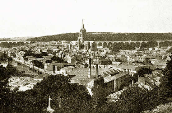 Launceston (14,310), the ancient capital, is a municipal borough, market, and union town, and head of a county court district. The town occupies a height, and above it towers the ancient castle, but a portion of the town, Newport, lies in the valley at the foot. Both the G.W.R. and the L. & S.W.R. have stations at Launceston. The church of granite is richly sculptured throughout; but in a debased Perpendicular style. It replaced an older church of which the tower alone remains. (pp. 7, 15, 25, 67, 96, 104, 111, 117, 121, 126, 129, 131, 132, 135, 137, 139.)