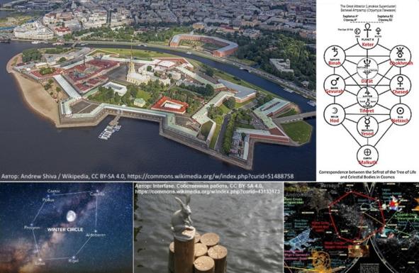 Если Петропавловская крепость имеет отношение к серебряному варианту и созданию новой земли для перерождения, то сфера «Нұр Әлем (Nur Alem)» соответствует верхнему миру нового золотого Древа Жизни, символ которого появился в Казахстане в 1997 году в виде Монумента Байтерек.