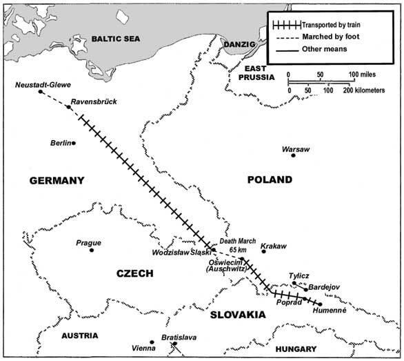 В феврале 1942 г. германское министерство иностранных дел обратилось к правительству Словакии с официальной просьбой отправить в Германию на работу 20 тысяч молодых и здоровых евреев. Правительство Словакии согласилось и обязалось перечислить Германии по 500 рейхсмарок за каждого депортированного, якобы в виде возмещения расходов на профессиональное обучение высланных евреев и их устройство на новом месте. Фактически эти деньги были уплачены за данную нацистами гарантию, что депортированные никогда не вернутся в Словакию, а на оставленную ими собственность не будут предъявлены претензии. С 26 марта до конца июля 1942 г. из Словакии в оккупированную немцами Польшу были высланы около 54 тысяч евреев; их доставили в Освенцим…, где практически всех уничтожили (ЭЕЭ). Как в любом последовательном плане по уничтожению народа, минимальные шансы на выживание имели именно женщины.