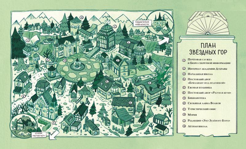 БАХ-ТАРАБАХ! К тому моменту, когда Крот Руссо снова зажёг свечи в своём канделябре, Лис Арчибальд, владелец Книжного магазина Зелёного Бора и автор «Записок из Зелёного Бора», уже успел зацепиться башмаком за край ковра и со страшным грохотом скатился по лестнице. Теперь он лежал, вытянувшись во весь рост, на полу первого этажа, под вырезанными в стволе старого дуба полками, на которых тысячи книг ожидали своих читателей. На его голове красовалась тарелка, а сам он и пол вокруг него были усыпаны раскрошившимися кексами с карамельной глазурью.