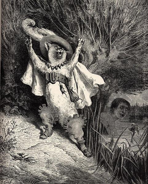 Кот, который имел осторожность предварительно навести справки о том, кто такой этот Людоед и какие за ним водятся таланты, попросил позволения представиться ему, говоря, что он не смел пройти мимо замка, не явившись к нему на поклон.