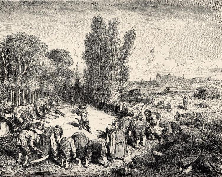 — Эй вы, жнецы! если вы да не скажете, что все эти хлеба принадлежат господину маркизу Карабасу, — смотрите у меня: — всех вас в порошок истолку!