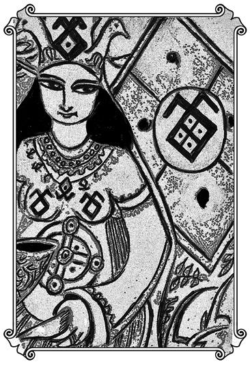 Черты (рунические знаки), изображенные на кощунах колоды «Черты и Резы», — это авторское прочтение календарных черт и рез, обнаруженных в середине ХХ века археологами на чаше из Лепесовки (академик Б. Рыбаков «Язычество древних славян») и рун вендского алфавита.