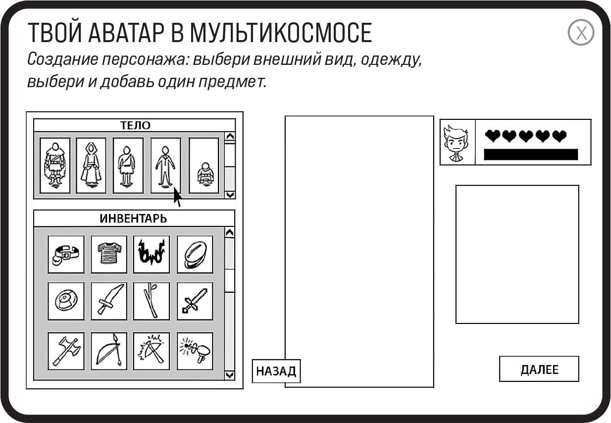 Для защиты выбираю волшебную кольчугу, которая совсем не заметна под одеждой. Для хранения инвентаря, особенно для взрывоопасных предметов, отлично подходит рюкзак Пандоры. Ну вот и всё, мой аватар снова готов завоёвывать МультиКосмос. С возвращением в игру, космик! Да, знаю, он ещё ничего не добился, но он мне уже очень нравится.