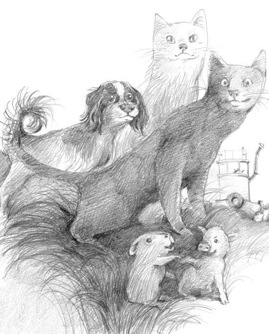 Эти дни на старой барже «Белка» казались Тихону самыми счастливыми в жизни. Они с Норой научились ловить жуков-плавунцов и стрекоз. Пёс Вениамин настраивал приборы – баржу он ласково называл «Белочка». Им удалось пришвартоваться у заброшенной пристани. На речном пассажирском теплоходе, брошенном, ставшим вдруг ненужным людям, оказался приличный запас топлива, мясных консервов и пресной воды. Там же Вениамин нашёл необходимые инструменты и материалы, чтобы заделать течь в трюме. Морская свинка Марыся, научившаяся читать навигационные карты так, что даже опытный мореплаватель Владимир Семёнович восхищённо ухал, прокладывая курс следования. По вечерам они, собираясь в кают-компании, смеялись, вспоминали деревенскую жизнь. Кошка Нора сворачивалась клубочком, и Тихон мог издалека ею любоваться. Марыся рассказывала, какие медузы водятся в Чёрном море и какие встречаются рыбы. Они с Норой вспоминали, как гастролировали с Театром зверей по побережью и как тепло их принимали в каждом городе. Проснувшись до рассвета, Тихон изучал атласы, мореходные карты и пытался заполнить стёршиеся указания Котовского. В каком городе сейчас его друг и остальные коты? В каком порту? А может, Тихон ошибся? Может, координаты указывают не на Чёрное море? Всё-таки у него была только малая часть карты. Остальное было стёрто. Если координаты указывали на Чёрное море, то в каком городе лучше сойти? Ведь они плыли по Оке, а Ока, как известно даже котятам, впадает в Волгу, а Волга – в Каспийское море.