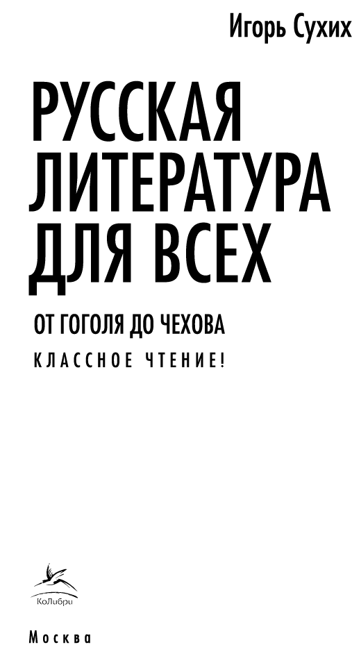 Русская литература для всех. От Гоголя до Чехова. Классное чтение! / Игорь Сухих. — М. : КоЛибри, Азбука-Аттикус, 2022.