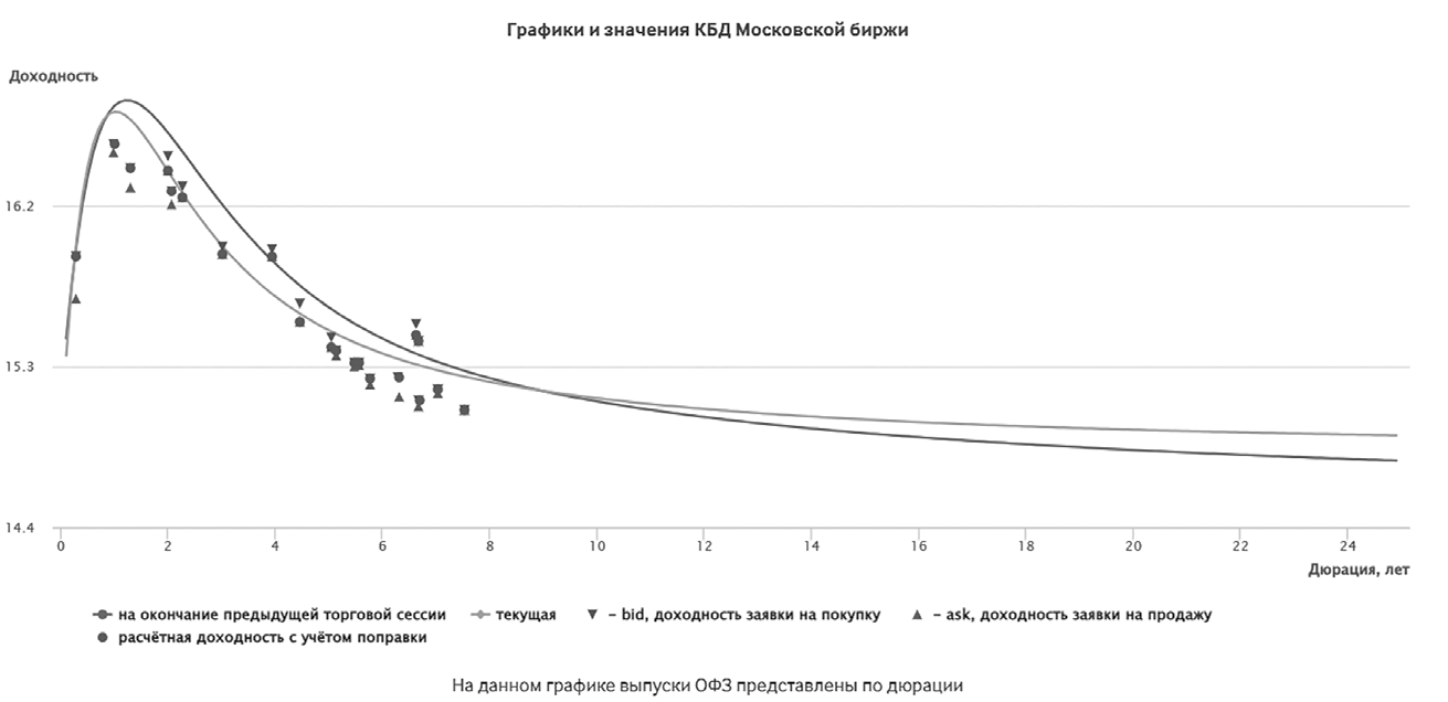 Так выглядит кривая доходности ОФЗ на Московской бирже