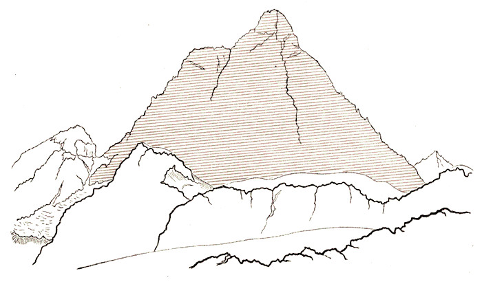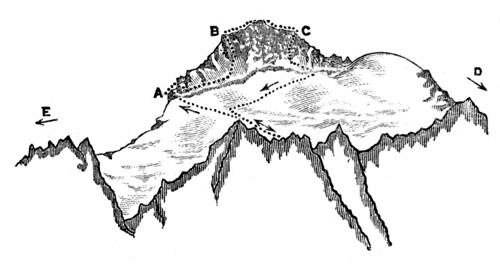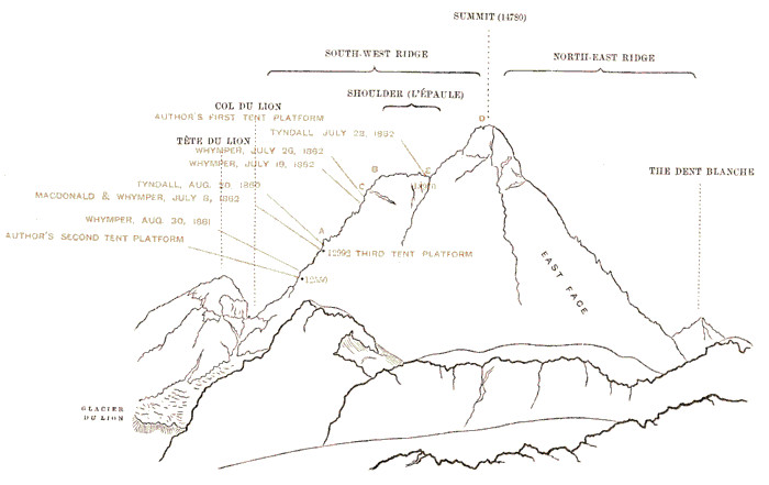 The chief part of this volume is occupied by the history of these attacks on the Matterhorn, and the other excursions that are described have all some connection, more or less remote, with that mountain or with Mont Pelvoux. All are new excursions (that is, excursions made for the first time), unless the contrary is pointed out. Some have been passed over very briefly, and entire ascents or descents have been disposed of in a single line. Generally speaking, the salient points alone have been dwelt upon, and the rest has been left to the imagination. This treatment has spared the reader from much useless repetition.