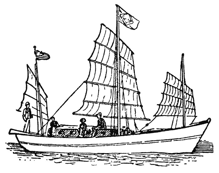 More sail was at once crowded on, and still more was set at every stage of the abatement of the gale, for the craft should not be lazy when big seas race after her. And so on we flew, like a scud, sheeting home sail after sail as required, till the 5th of March, when all of her white wings were spread, and she fairly "walked the waters like a thing of life." There was now wind enough for several days, but not too much, and our swift-sailing craft laughed at the seas trying to catch her.
