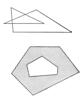 Book V treats of regular polygons and circles, and includes the computation of the approximate value of π. It opens with a definition of a regular polygon as one that is both equilateral and equiangular. While in elementary geometry the only regular polygons studied are convex, it is interesting to a class to see that there are also regular cross polygons. Indeed, the regular cross pentagon was the badge of the Pythagoreans, as Lucian (ca. 100 B.C.) and an unknown commentator on Aristophanes (ca. 400 B.C.) tell us. At the vertices of this polygon the Pythagoreans placed the Greek letters signifying "health."
