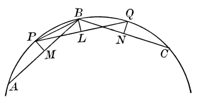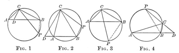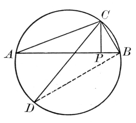 The object of this proposition is, of course, to prepare the way for finding the perimeter of a polygon of 2n sides, knowing that of n sides. The Greek plan was generally to use both an inscribed and a circumscribed polygon, thus approaching the circle as a limit both from without and within. This is more conclusive from the ultrascientific point of view, but it is, if anything, less conclusive to a beginner, because he does not so readily follow the proof. The plan of using the two polygons was carried out by Archimedes of Syracuse (287-212 B.C.) in his famous method of approximating the value of π, although before him Antiphon (fifth century B.C.) had inscribed a square (or equilateral triangle) as a basis for the work, and Bryson (his contemporary) had attacked the problem by circumscribing as well as inscribing a regular polygon.