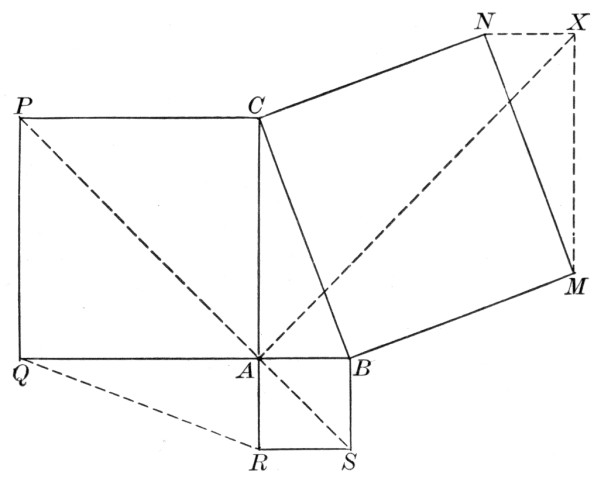 [81] Special recognition of indebtedness to H. A. Naber's "Das Theorem des Pythagoras" (Haarlem, 1908), Heath's "Euclid," Gow's "History of Greek Mathematics," and Cantor's "Geschichte" is due in connection with the Pythagorean Theorem.