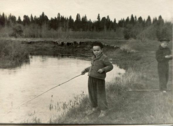Племянник Сережа, с другом Алешей Григорьевым на реке Балдушке. 1962 год.