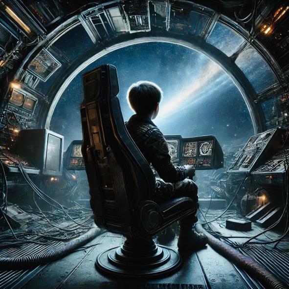 Его руки и ноги двигались с трудом — каждая попытка пошевелиться давалась болезненно и медленно. Длительное пребывание на корабле ослабило его организм, лишив его былой энергии. Он пытался нащупать опору, но тело словно не слушалось, оставаясь тяжёлым и неподвижным. Мальчик чувствовал себя пленником — не только в этом кресле, но и в собственном теле, а где-то глубоко внутри с каждым мгновением нарастала невыносимая тоска и одиночество.