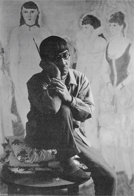 В Париж Фудзита (или Леонард Фужита — на французский манер) прибыл в 1913-м, через три года после окончания Токийской школы изящных искусств12. Первые годы во Франции стали для него временем поиска собственного стиля, очарования европейским кубизмом и футуризмом. Первое время он работал в акварели, а его холсты были представлены на Осеннем салоне лишь шесть лет спустя, в 1919 году. К началу 1920-х сформировался круг главных сюжетов Фудзиты: кошки, дети, автопортреты и обнаженные женщины. Благодаря узнаваемой линеарной стилистике и светлому колориту, его работы неизменно привлекали внимание. В 1923 году он уже был одним из самых известных художников Парижа и вошел в состав жюри Осеннего салона. Описывая выставки 1922–1923 года в очерке «Осенний салон», Владимир Маяковский отметил, что произведения Фудзиты привели публику в большое возбуждение. Об одной из его работ он писал: «Это номер 870, картина художника японца Фужита — „Ню“. Разлёгшаяся дама. Руки заложены за голову. Голая. У дамы открытые настежь подмышки. На подмышке волосики. Они-то и привлекают внимание. Волосики сделаны с потрясающей добросовестностью. Не каким-нибудь общим мазком, а каждый в отдельности. Прямо хоть сдавай их на учёт в Центрощетину по квитанции. Ни один не пропадёт — считанные»[15].