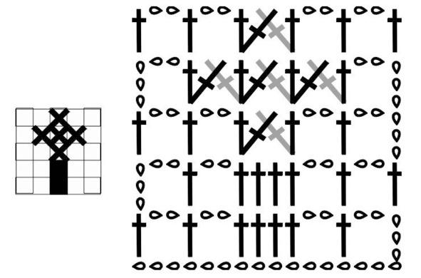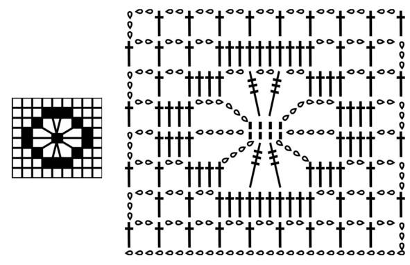 Эта сетка используется обычно внутри филейного вязания для большего выделения рисунка.