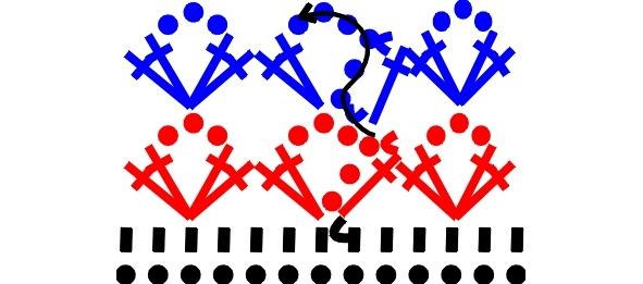 Используется для оттенения крупных фигурок. Столбики без накида желательно провязывать не под дужку предыдущего ряда, а в среднюю петлю дужки — вязание получается более аккуратным.